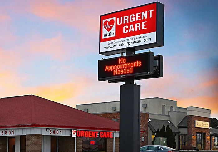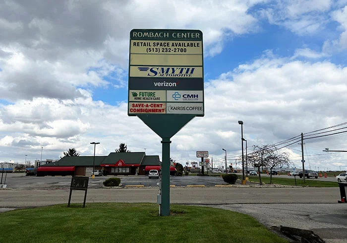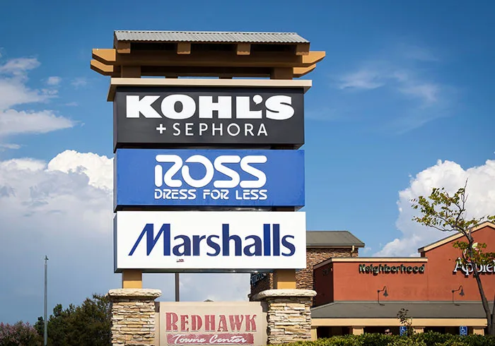 Multi-tenant pylon signs are designed to display the names of multiple businesses within a complex or shopping center. These signs often feature interchangeable panels, allowing for easy updates.