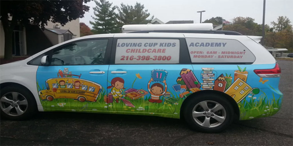 The Brooklyn location of the Loving Cup Kids Academy is at 4476 Ridge Road. Staffed with passionate teachers, this childcare center is an inspiring environment that keeps youngsters safe while allowing them to explore, learn and develop healthy self-esteem. When this business needed car wraps to advertise in Brooklyn OH, to take its marketing and branding messages on the road, the company’s management team contacted our professionals for assistance.