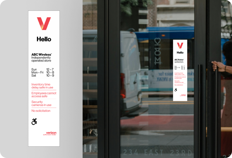 Verizon door vinyls are the ultimate solution for enhancing your Verizon store branding. These custom vinyl graphics are weather-resistant, ensuring durability and vibrant appeal for your storefront doors. Perfect for reinforcing brand identity, Verizon door vinyls make a strong first impression while offering practical benefits like showcasing store hours or promotions.